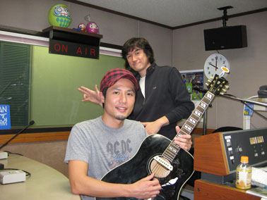 本日のゲストはシンガーソングライター惣四郎さん。彼とは4月17日にあった楽芸会で初めて会った。絵本作家の久保添さんのご紹介だった。彼の音楽のルーツはズバリ長渕剛さん。しかも僕も好きなイメージチェンジする前の長渕さんに強く影響を受けたという。そんな彼とは、話が合うに決まってるでしょう!歌の世界やら、持ってきたギターの談義に花が咲きました。ギブソンのJ40というめずらしいモデル。思わず写真撮ってしまったよ!主催するギター教室は無料だとか。湘南でもライブが増えているそうだから是非行ってみよう!(7月10日茅ヶ崎パールサウンドスタジオ19時〜2000円d付)HPもチェックだぞ!