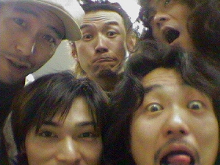 今日のゲストは・・・ 12月26日藤沢市民会館で、あつーいライブを展開してくれた、RMS周辺の人々。この写真からは誰が誰なのか、判別しづらいかも。一番”いいおとこ”系の”TAKEYA”、渋目のいい男系”ダンディ大矢修司”、長髪はアコギを持ってもロッ クんローラーの証”福山芳樹”、ムサイひげづらも今やトレードマーク助平唄の”コンズ”、あとはフツーのひと”森田哲朗”。今回は連写で 楽しんでちょ