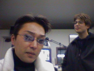 本日のゲストは今年一番乗りで遊びに来てくれた”nouvo nude" が再び登場!2月14日にいよいよファーストアルバムがリリースされ、今現在の心境などを熱く語ってくれた。今回来てくれたのは”key担当バジュンさん”(他のメンバーはなんと体調を崩し欠場!早く治してね!)なんとバジュンさん横須賀に在住とのこと。僕はすっかり東京人だと思っていたので、急に親しみがわきました。それと、写真の西洋人(ヘンな表現だけど)はリッキーさん。nouvoのプロデュ-サーであらします。アイルランド がご出身だそうです。