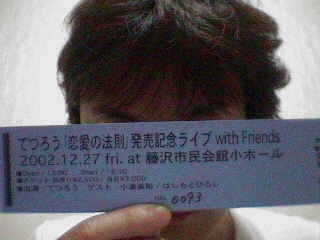 みなさんにうれしい報告があります。我が”てつろうのミュージックスクールバス”が今年1年エフエム湘南ナパサ内での 質の良い放送が認められ、放送局への貢献度が最も大きかったということで、2002年度ナパサ”番組賞”を受賞しました!この名誉ある賞も普段から皆さんから頂いてるファックスがとても重要な要素であり、紛れも無く皆さんからの応援が無ければありえなかった事です。この場を借りて厚く御礼申し上げます。本当にありがとうございました!これからも、楽しい番組にするべく尚一層 がんばりますので、来年からも引き続き宜しくお願いいたします!・・・と、今日はそんな滑り出しで快調に放送は進んだのでした。 (笑)