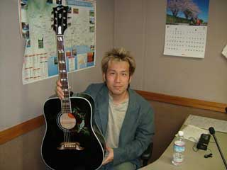 本日のゲストは本家智樹さん。シンガーソングライターであり、僕のエフエム大和での番組のディレクターでもある。今日はシンガーとしての側面にスポットを当てた。それにしても今日生唄のために持参してくれたギターがまたシビレル!(フォト参照)ギブソン、DAVE(ダヴ)・・・超カッコイイ!生音もビンビン来ています。最近ヘアースタイルをイメチェンして粋な兄ちゃん化していますが、歌はなんとも味があって入り込めます。実体験から導き出された詩は本当にリアル。渋谷アピアがホームグラウンド、是非一度その歌に触れに行ってもらいたい。